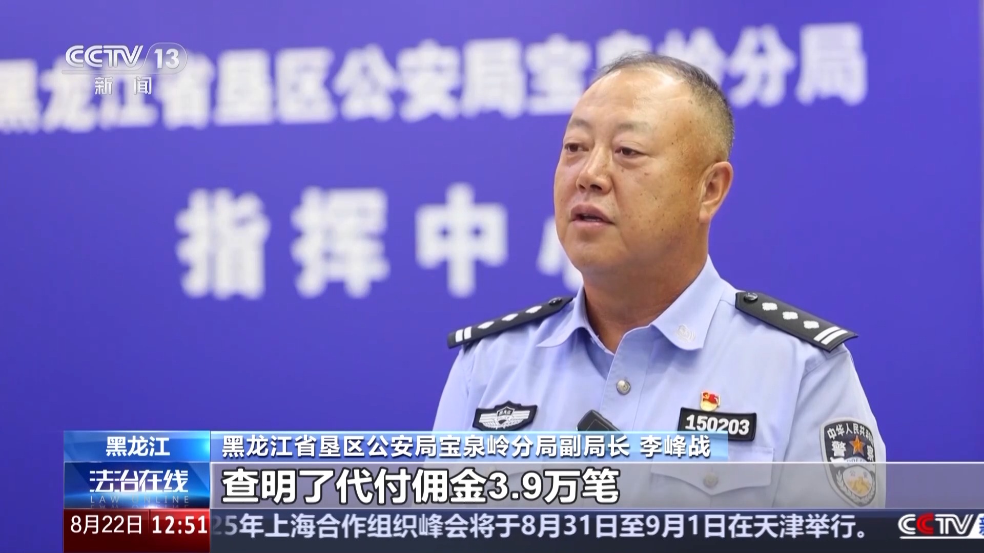 黑龍江省墾區(qū)公安局寶泉嶺分局副局長 李峰戰(zhàn):經(jīng)過對這三個(gè)犯罪團(tuán)伙犯罪過程進(jìn)行深度研判,我們又發(fā)現(xiàn)了該犯罪團(tuán)伙組織全國20多個(gè)省市地區(qū)的人員參與引流犯罪,查明了代付傭金3.9萬筆,累計(jì)800余萬元。