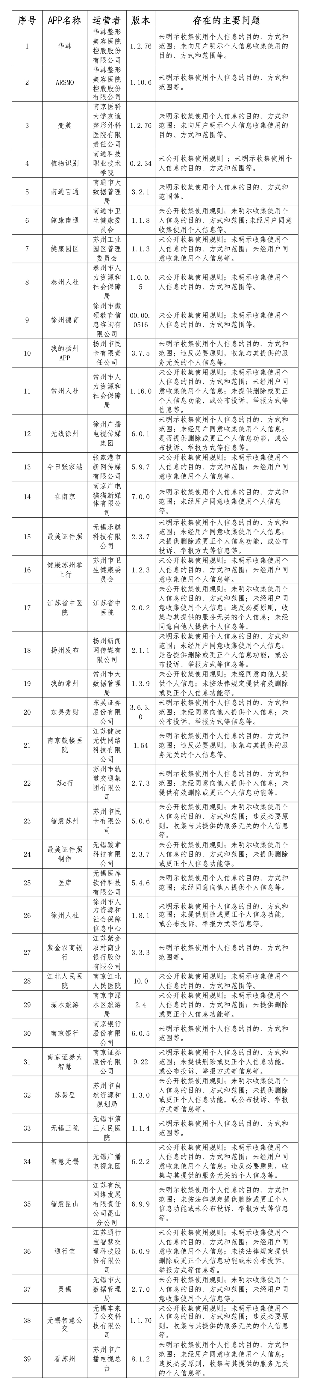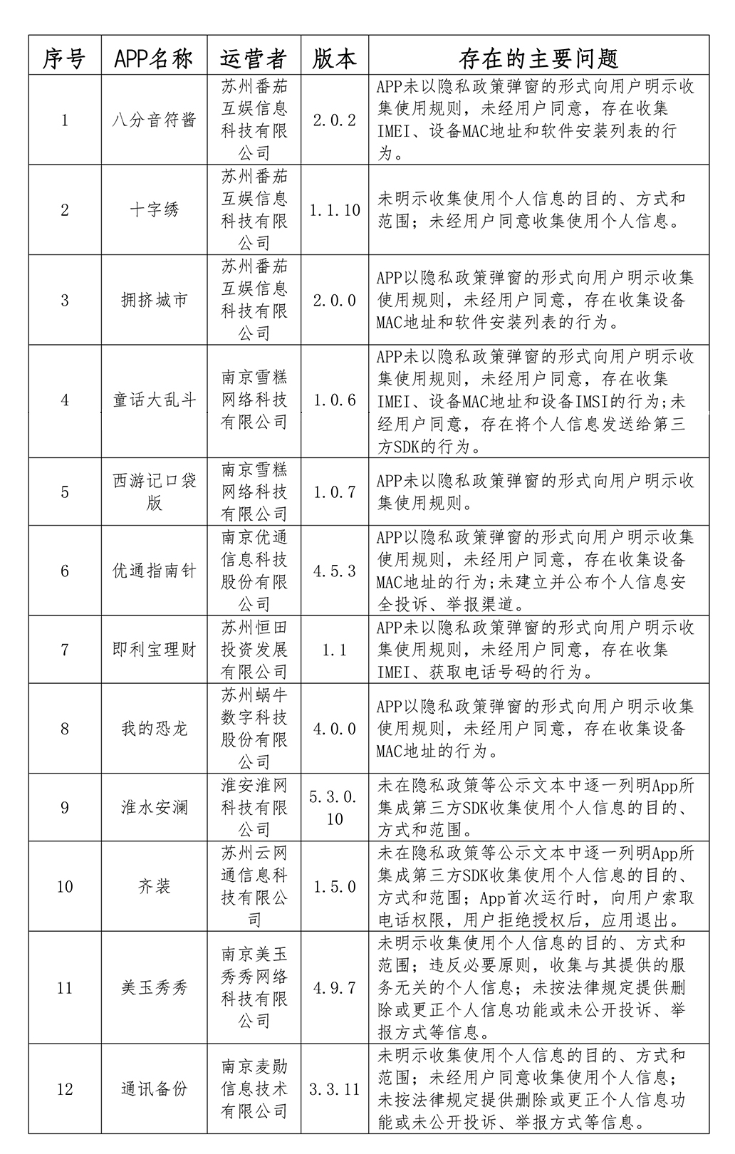近期,針對人民群眾反映強烈的App非法獲取、超范圍收集、過度索權(quán)等侵害個人信息的問題,江蘇省委網(wǎng)信辦、省公安廳、省市場監(jiān)督管理局、省通信管理局依據(jù)《中華人民共和國網(wǎng)絡安全法》《App違法違規(guī)收集使用個人信息行為認定方法》《常見類型移動互聯(lián)網(wǎng)應用程序必要個人信息范圍規(guī)定》等法律和有關規(guī)定,對省內(nèi)重點App的個人信息收集使用情況進行了檢測?,F(xiàn)將前期通報未按要求整改的App予以下架,通報一批存在問題App。