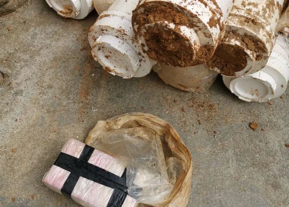 圖為警方查獲的藏匿于PVC管道中的部分現(xiàn)金。(警方供圖)