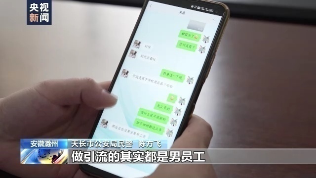 安徽省天長市公安局民警 陳方飛:他們這個(gè)犯罪團(tuán)伙里面有個(gè)崗位叫“引流”,做“引流”的其實(shí)都是男員工,在他們內(nèi)部也叫“運(yùn)營”。他們利用女主播的頭像去注冊(cè)社交賬號(hào),也會(huì)發(fā)一些女主播的日常生活視頻在這個(gè)賬號(hào)上,然后在各個(gè)社交平臺(tái)上物色男性客戶,主動(dòng)去搭訕,吸引他們的關(guān)注。