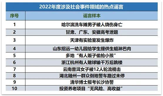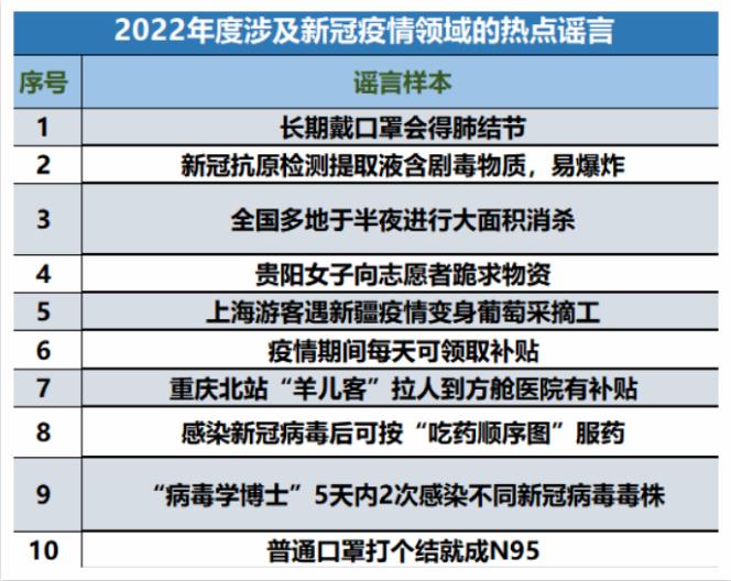 2022年,國(guó)際國(guó)內(nèi)熱點(diǎn)事件中,網(wǎng)絡(luò)謠言“趁虛而入”,時(shí)有發(fā)酵,涉及疫情防控、公共政策、社會(huì)事件、醫(yī)療健康、自然現(xiàn)象等公眾關(guān)心關(guān)切領(lǐng)域,可謂“套路百出”,令人深?lèi)和唇^。針對(duì)網(wǎng)絡(luò)謠言這一痼疾,中國(guó)互聯(lián)網(wǎng)聯(lián)合辟謠平臺(tái)重拳出擊,全年共受理網(wǎng)民謠言舉報(bào)信息3萬(wàn)余條,匯集謠言樣本和辟謠數(shù)據(jù)2.45萬(wàn)條,共發(fā)布各類(lèi)辟謠稿件1.31萬(wàn)篇,推出了12期《打擊網(wǎng)絡(luò)謠言 共建清朗家園 中國(guó)互聯(lián)網(wǎng)聯(lián)合辟謠平臺(tái)月度辟謠榜》、科學(xué)流言榜以及“涉防災(zāi)減災(zāi)辟謠榜”“涉化妝品辟謠榜”“涉高考高招辟謠榜”“涉食品安全辟謠榜”等行業(yè)辟謠榜單。這些謠言背后的真相您都了解了嗎?中國(guó)互聯(lián)網(wǎng)聯(lián)合辟謠平臺(tái)特此盤(pán)點(diǎn)解析,為您澄清謬誤,傳遞事實(shí)真相。
