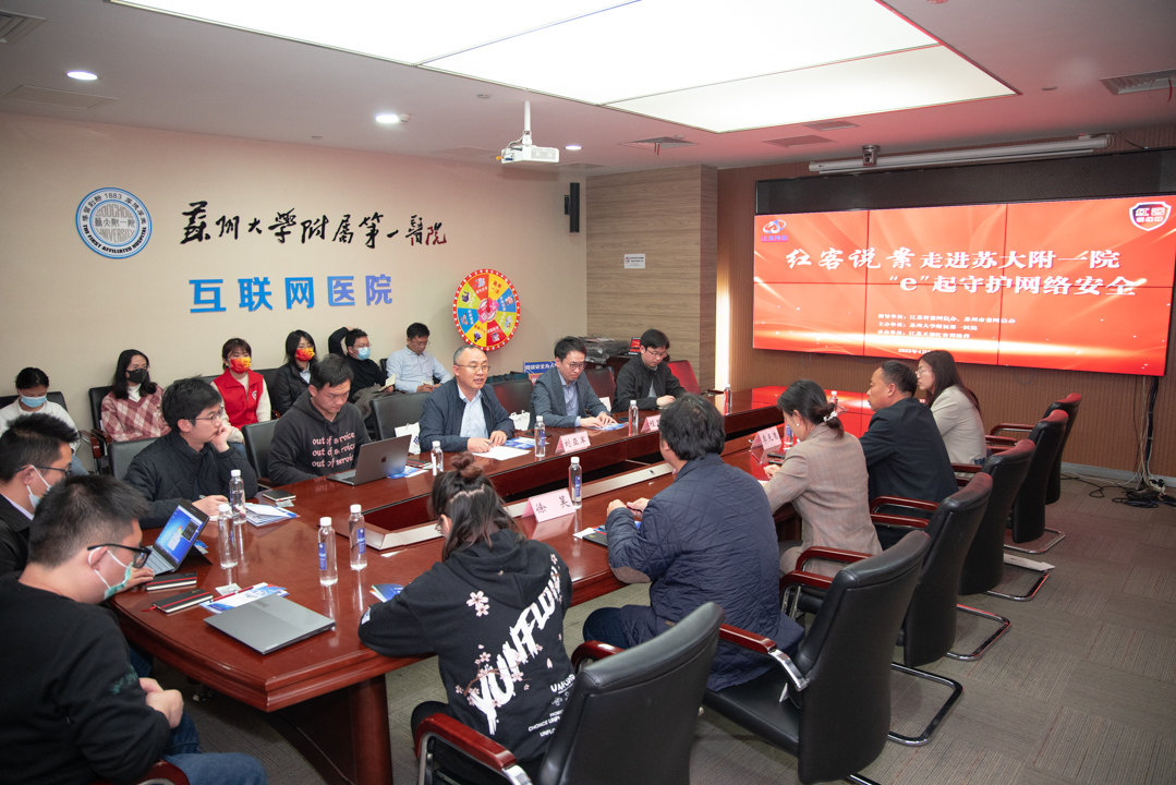 新江蘇·中國江蘇網(wǎng)訊(記者徐春暉)隨著互聯(lián)網(wǎng)產(chǎn)業(yè)飛速發(fā)展,醫(yī)院信息化建設(shè)的深入推進(jìn),醫(yī)院信息系統(tǒng)在日常診療工作的作用愈發(fā)凸顯。4月6日下午,江蘇天創(chuàng)紅客訓(xùn)練營(yíng)在蘇州大學(xué)附屬第一醫(yī)院舉辦“紅客說案”走進(jìn)企業(yè)活動(dòng),進(jìn)一步提高醫(yī)院在網(wǎng)絡(luò)與信息系統(tǒng)的數(shù)據(jù)安全防護(hù)和保障能力。本次活動(dòng)由江蘇省委網(wǎng)信辦指導(dǎo),蘇州大學(xué)附屬第一醫(yī)院主辦,江蘇天創(chuàng)紅客訓(xùn)練營(yíng)承辦。