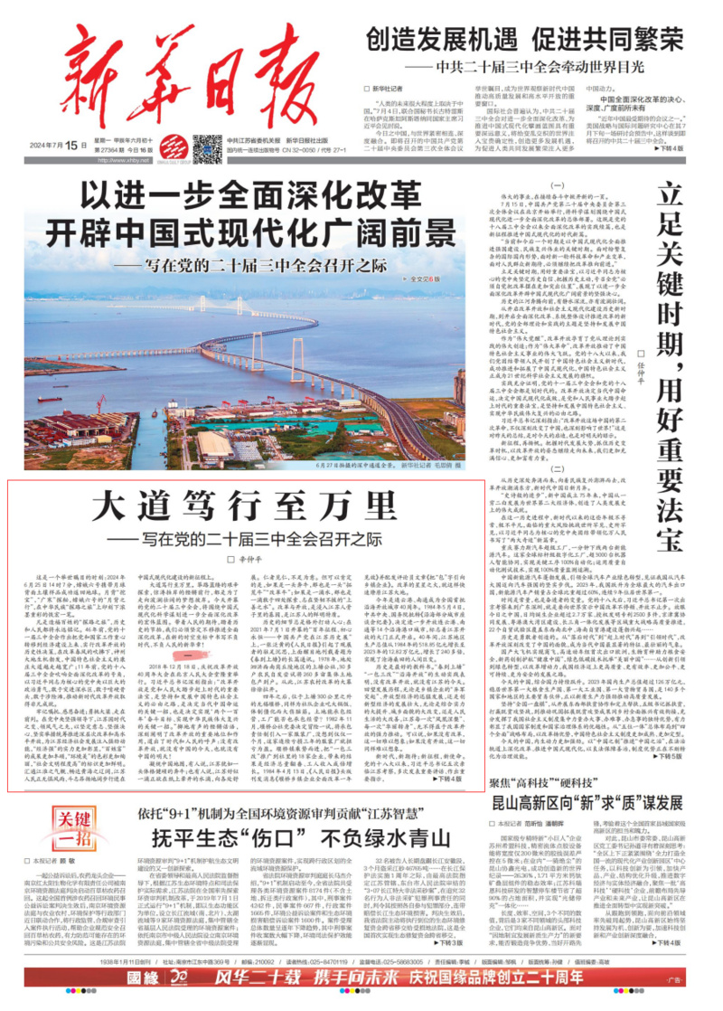 2024年7月15日《新華日?qǐng)?bào)》截圖