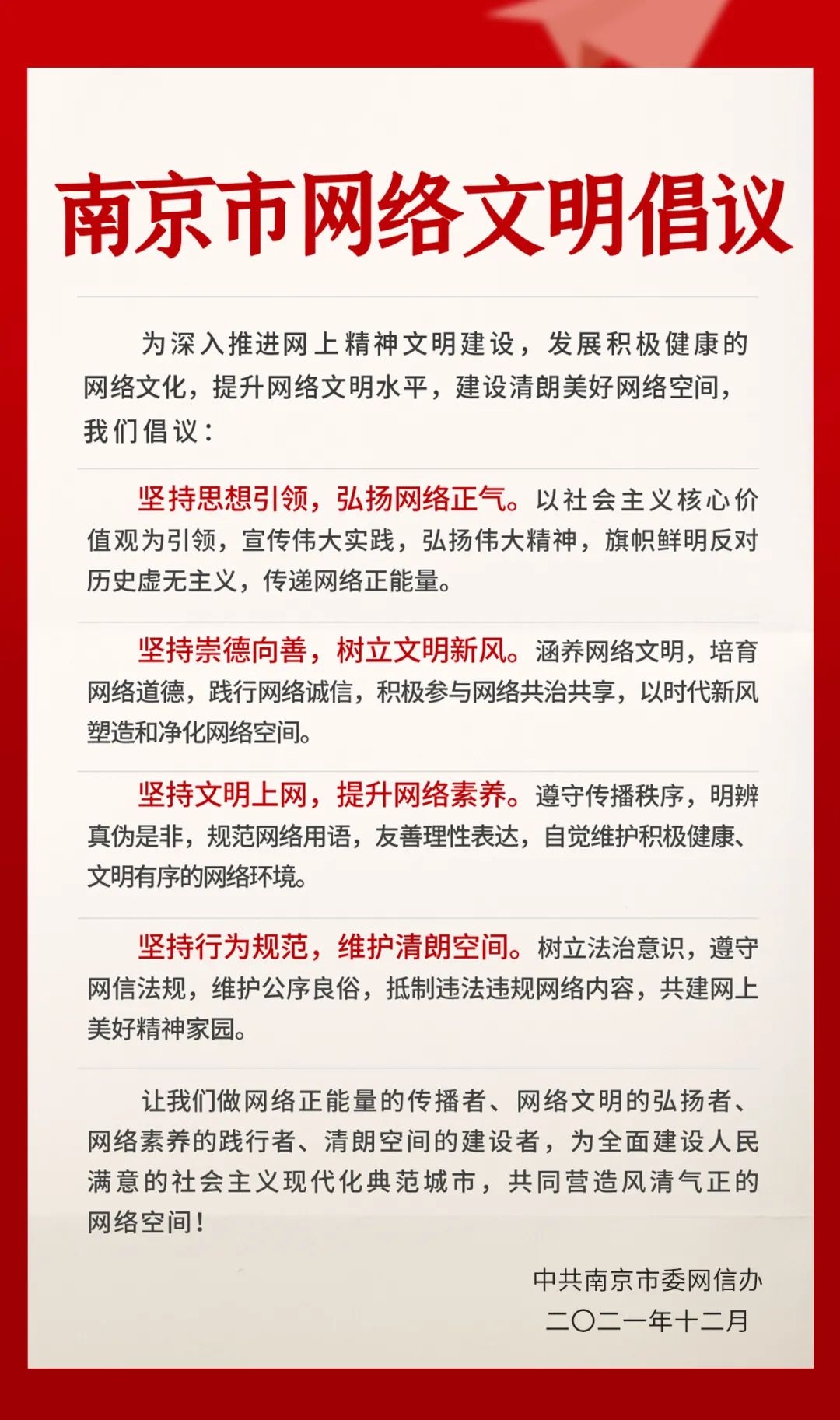 南京作為一個(gè)互聯(lián)網(wǎng)大市,在管網(wǎng)、用網(wǎng)的基礎(chǔ)上不斷向著興網(wǎng)邁進(jìn),在加強(qiáng)網(wǎng)絡(luò)文明建設(shè)方面交出了一份亮眼的成績(jī)單,讓我們盤點(diǎn)一下2021年南京網(wǎng)絡(luò)文明建設(shè)中的6件大事。