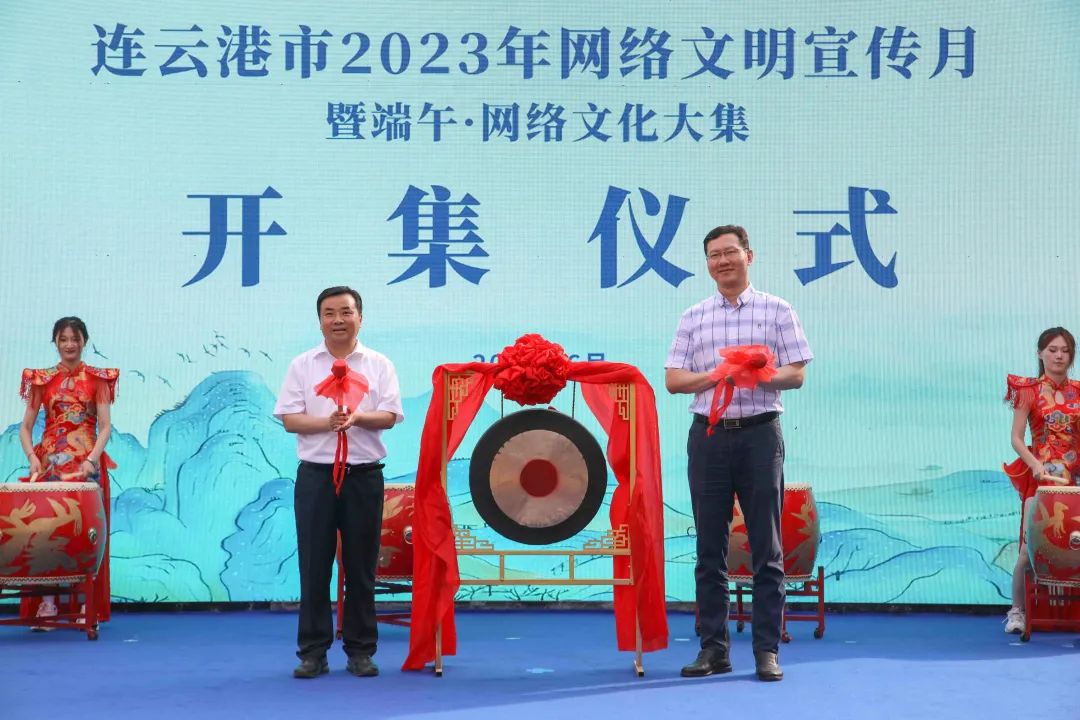 6月21日下午,連云港市2023年網絡文明宣傳月暨端午網絡文化大集主題活動在鏗鏘有力的鑼鼓聲中正式啟動?;顒又荚谏钊胴瀼亓暯娇倳涥P于網絡強國的重要思想,以及習近平總書記在文化傳承發(fā)展座談會上的重要講話精神,推動網絡文化與網絡文明同頻共振,凝聚高質量發(fā)展后發(fā)先至的強大力量。連云港市委宣傳部副部長、市委網信辦主任李武,連云區(qū)委副書記蘇軍,市委網信辦副主任伏祥志,團市委副書記王帆等領導出席活動,全市各縣區(qū)網絡自媒體代表、青年網民代表等共計100余人參加啟動儀式。