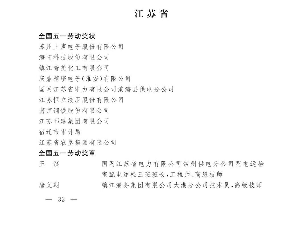 記者注意到,今年共有200個單位獲得全國五一勞動獎狀,966名職工被授予全國五一勞動獎?wù)拢?56個被授予全國工人先鋒號。其中,江蘇有9個單位獲授全國五一勞動獎,54名個人獲授全國五一勞動獎?wù)拢?0個集體獲授全國工人先鋒號。