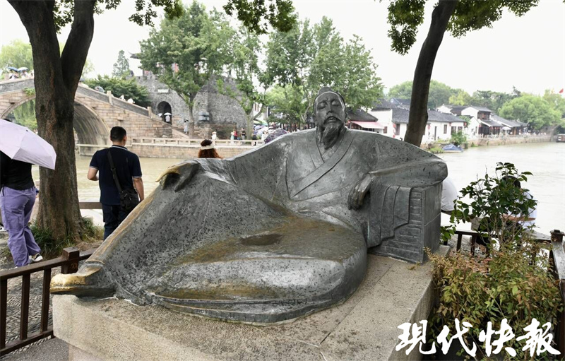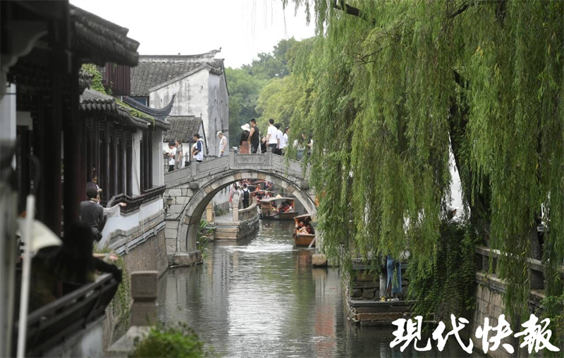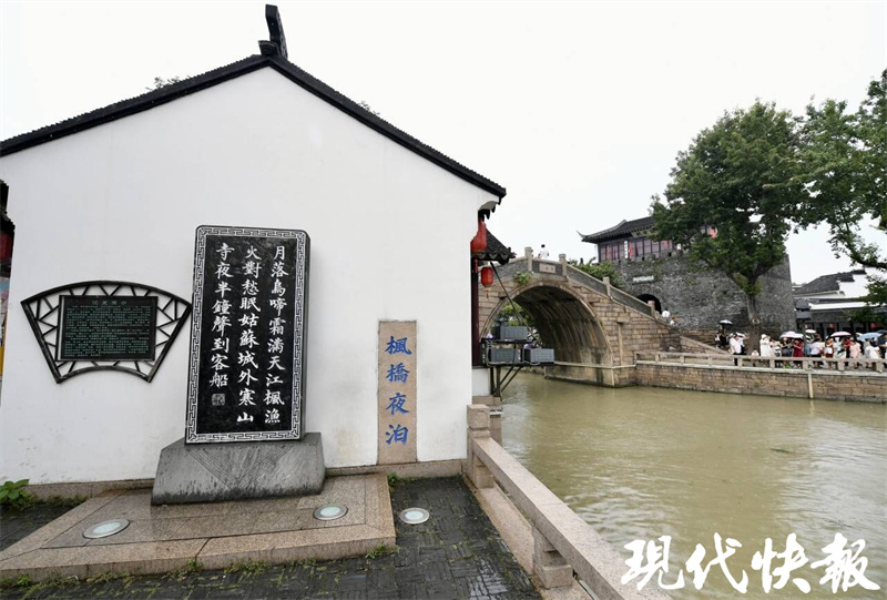 “姑蘇城外寒山寺,夜半鐘聲到客船”,一首《楓橋夜泊》,伴隨著寒山寺的鐘聲流傳了上千年。在蘇州楓橋夜泊景區(qū),采訪團(tuán)成員們看到,游人如織,橫跨在運(yùn)河上的楓橋,造型古樸簡單。