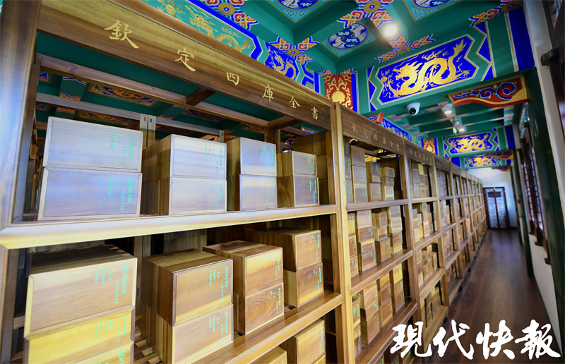 在揚(yáng)州文匯閣,歷時(shí)12年復(fù)制完成的《四庫全書》在記者們的眼前鋪陳開來。據(jù)了解,文匯閣曾毀于戰(zhàn)火,今年4月復(fù)建完成并正式開放,《四庫全書》重新入藏,時(shí)隔169年書與閣再次相逢。