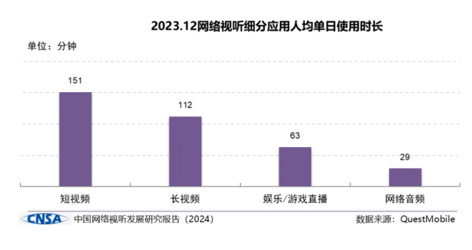 移動(dòng)端視聽?wèi)?yīng)用人均單日使用時(shí)長超3小時(shí),短視頻人均單日使用時(shí)長為151分鐘,網(wǎng)絡(luò)視聽仍然是“殺時(shí)間第一利器”