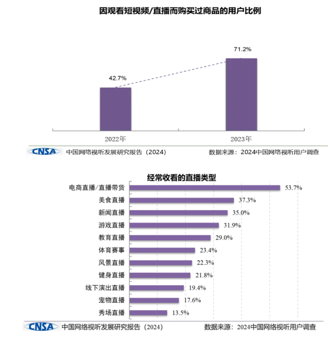 短視頻直播拉動(dòng)消費(fèi)效應(yīng)明顯,七成以上用戶因看短視頻/直播購買商品,短視頻/直播和電商、文旅成為最強(qiáng)CP