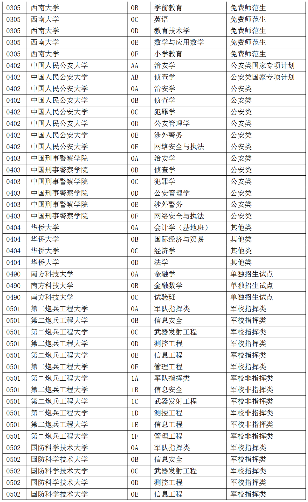 說(shuō)明:以下院校及專業(yè)信息僅供志愿填報(bào)模擬演練填報(bào)使用,正式的院校及專業(yè)信息以《報(bào)考指導(dǎo)》為準(zhǔn)。