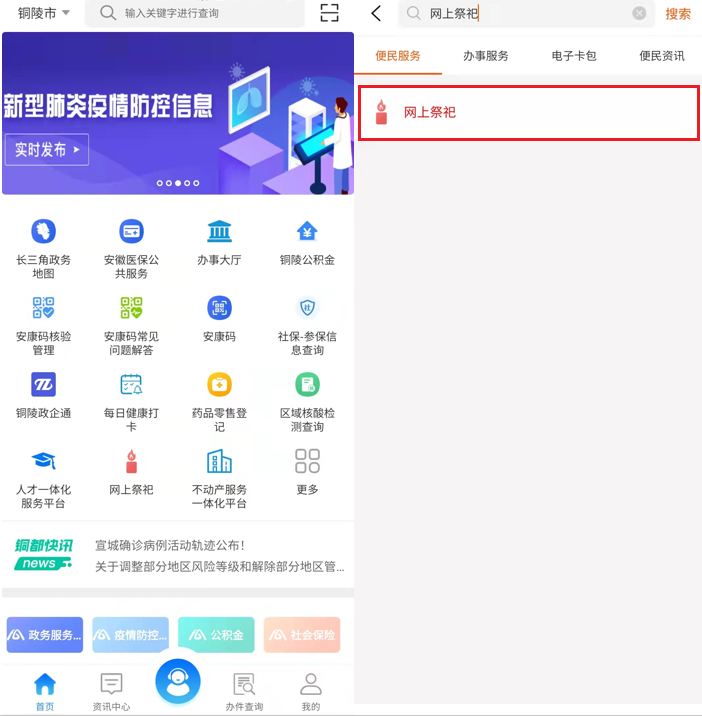 下面以銅陵市為例給大家介紹下如何進行“網(wǎng)上祭祀”