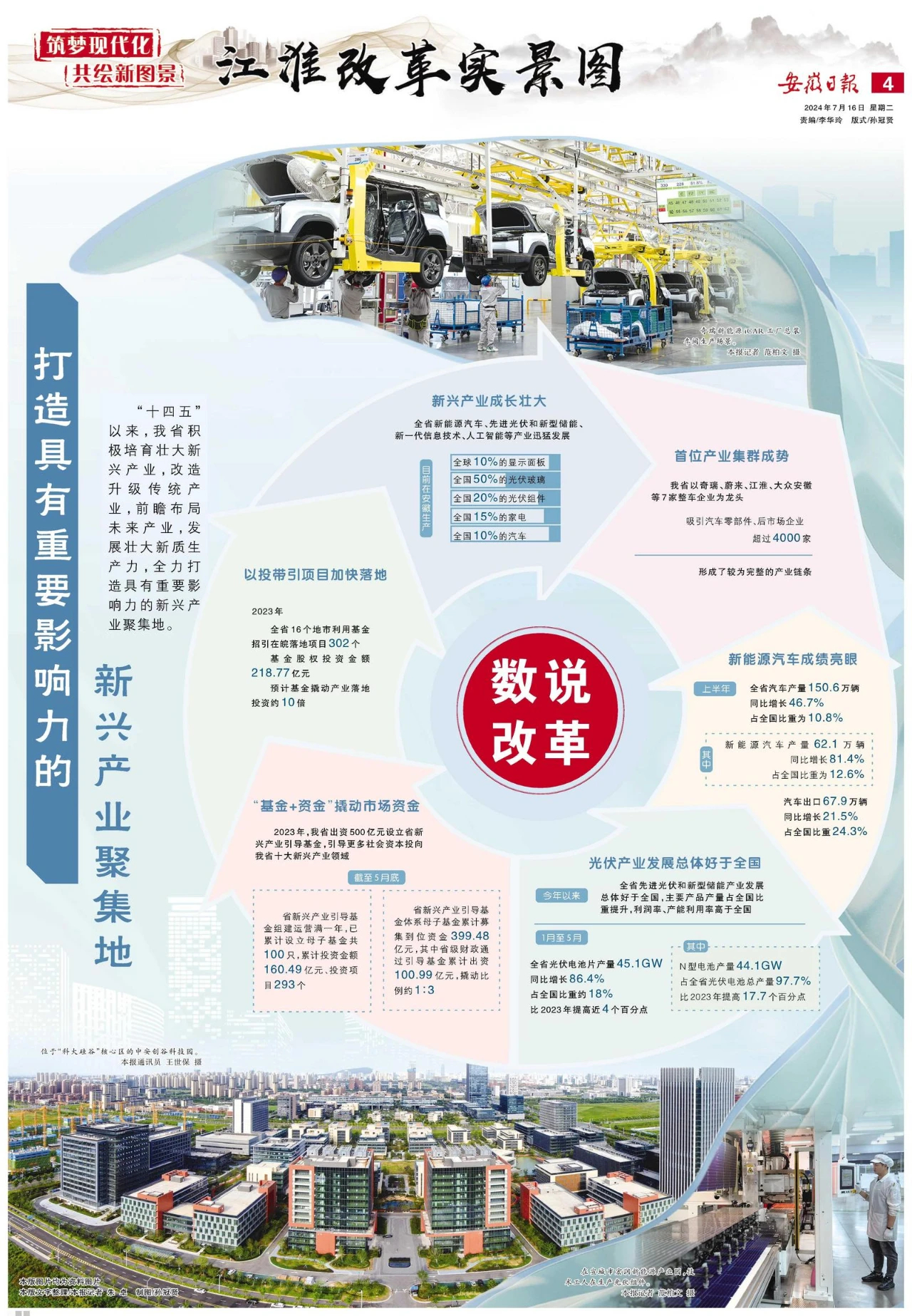 如今,全球10%的顯示面板,全國50%的光伏玻璃、20%的光伏組件、15%的家電、10%的汽車在安徽生產(chǎn)。