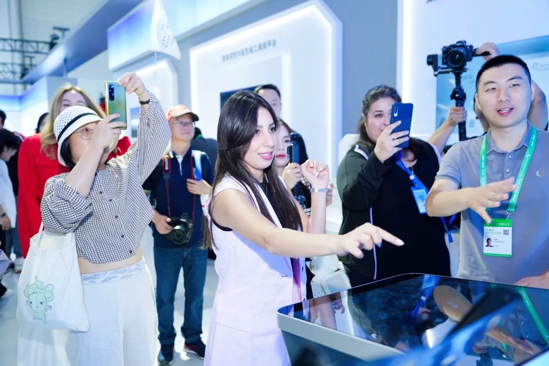 AIGC互動(dòng)拍照、全息投影互動(dòng)機(jī)器人、智慧農(nóng)機(jī)、單軌列車、高仿生撲翼機(jī)器人……從前沿技術(shù)到創(chuàng)新生態(tài),“中國(guó)智造新場(chǎng)景”讓現(xiàn)場(chǎng)的外國(guó)網(wǎng)紅大飽眼福,網(wǎng)紅們不約而同地為“安徽制造”點(diǎn)贊。在空中成像互動(dòng)展示屏前,俄羅斯網(wǎng)紅博主麗娜體驗(yàn)了該設(shè)備搭載的可交互空中成像技術(shù),點(diǎn)擊空中畫面,即可實(shí)現(xiàn)立體模型交互、空中題詞、多屏聯(lián)動(dòng)等操控,過程中不存在任何接觸,這讓麗娜很是新奇,在她看來,相比傳統(tǒng)屏幕,這項(xiàng)可交互空中成像技術(shù)讓展示更具科技感,“可交互空中成像技術(shù)正在讓生活更美好!”