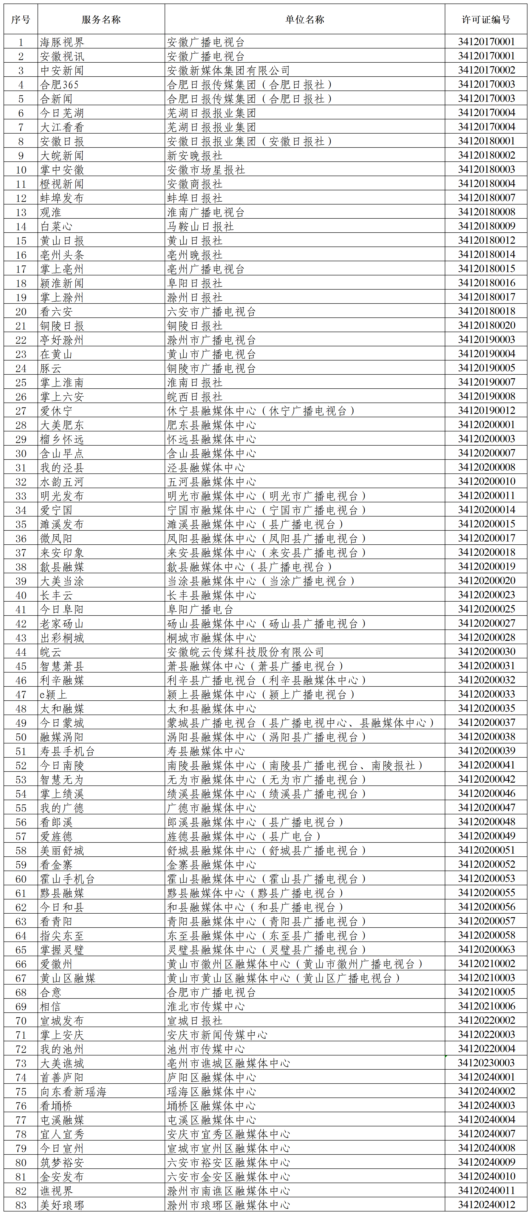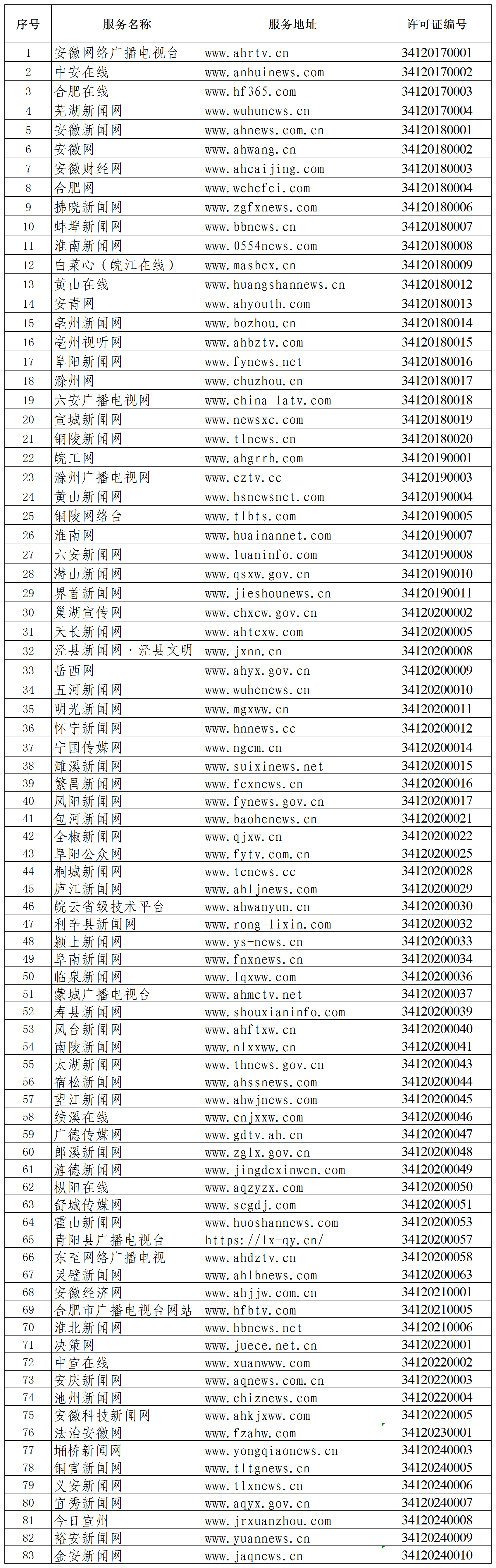 現(xiàn)將安徽省互聯(lián)網(wǎng)新聞信息服務(wù)單位相關(guān)許可信息予以公開。截至2024年12月31日,經(jīng)安徽省互聯(lián)網(wǎng)信息辦公室審批的互聯(lián)網(wǎng)新聞信息服務(wù)單位總計121家,具體包括448個服務(wù)項目:互聯(lián)網(wǎng)站83個,應(yīng)用程序83個,公眾賬號282個。