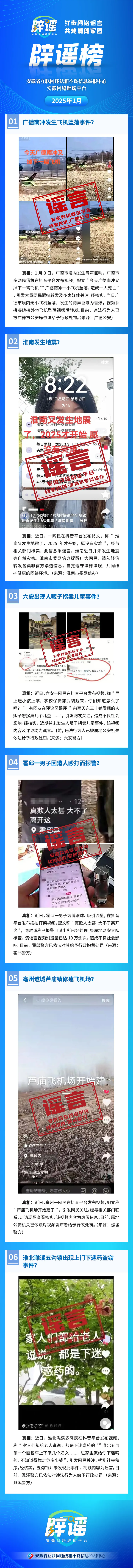安徽網(wǎng)絡(luò)辟謠平臺(tái)2025年1月辟謠榜發(fā)布