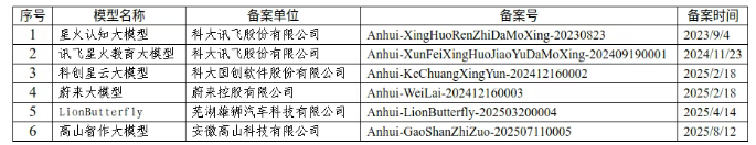 附件:安徽省生成式人工智能服務(wù)已備案信息(截至2025年8月15日)