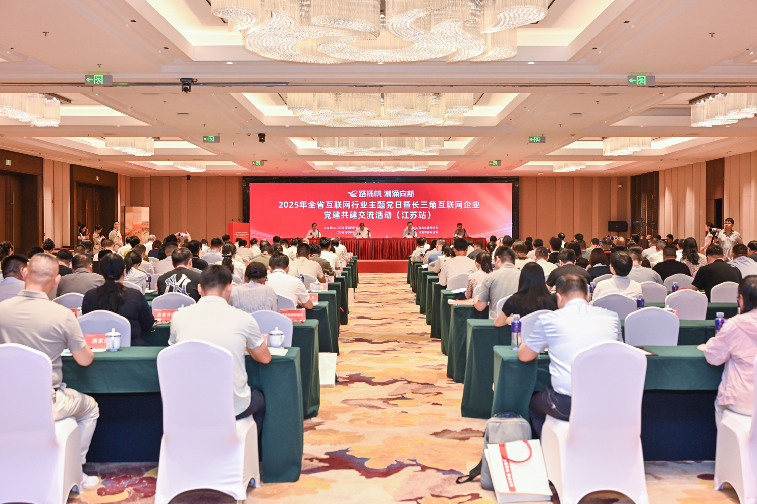 7月15日,2025年江蘇省互聯(lián)網(wǎng)行業(yè)主題黨日暨長(zhǎng)三角互聯(lián)網(wǎng)企業(yè)黨建共建交流活動(dòng)(江蘇站)在淮安舉行。省委宣傳部副部長(zhǎng)、省委網(wǎng)信辦主任、省互聯(lián)網(wǎng)行業(yè)黨委書(shū)記楊力群,省委網(wǎng)信辦副主任、省互聯(lián)網(wǎng)行業(yè)黨委副書(shū)記趙明,淮安市委常委、宣傳部部長(zhǎng)李森,省互聯(lián)網(wǎng)行業(yè)黨委副書(shū)記、省互聯(lián)網(wǎng)行業(yè)聯(lián)合會(huì)常務(wù)副會(huì)長(zhǎng)杜家雷,浙江省委網(wǎng)信辦一級(jí)巡視員、省委互聯(lián)網(wǎng)企業(yè)工委專(zhuān)職副書(shū)記王炅出席會(huì)議,省委組織部、省委社會(huì)工作部相關(guān)業(yè)務(wù)處室負(fù)責(zé)同志,省互聯(lián)網(wǎng)行業(yè)黨委委員,各設(shè)區(qū)市市委網(wǎng)信辦(互聯(lián)網(wǎng)行業(yè)黨委)主要負(fù)責(zé)同志以及長(zhǎng)三角區(qū)域三省一市黨委網(wǎng)信辦相關(guān)處室負(fù)責(zé)同志參加活動(dòng)。