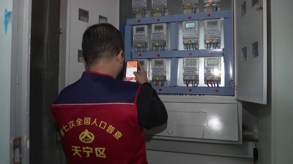 10月26日,江蘇省常州市天寧街道青果巷社區(qū)的人口普查指導(dǎo)員趙波和普查員薛蓮,來到青果南苑一居民樓開展入戶摸底。在八樓遇到一戶無人應(yīng)答,趙波隨即找到該戶的電表,拿出手機(jī)登錄網(wǎng)上國網(wǎng)APP,使用“e普查”程序掃描電表二維碼后顯示為紅色碼,趙波放心地將該登記為空置戶。