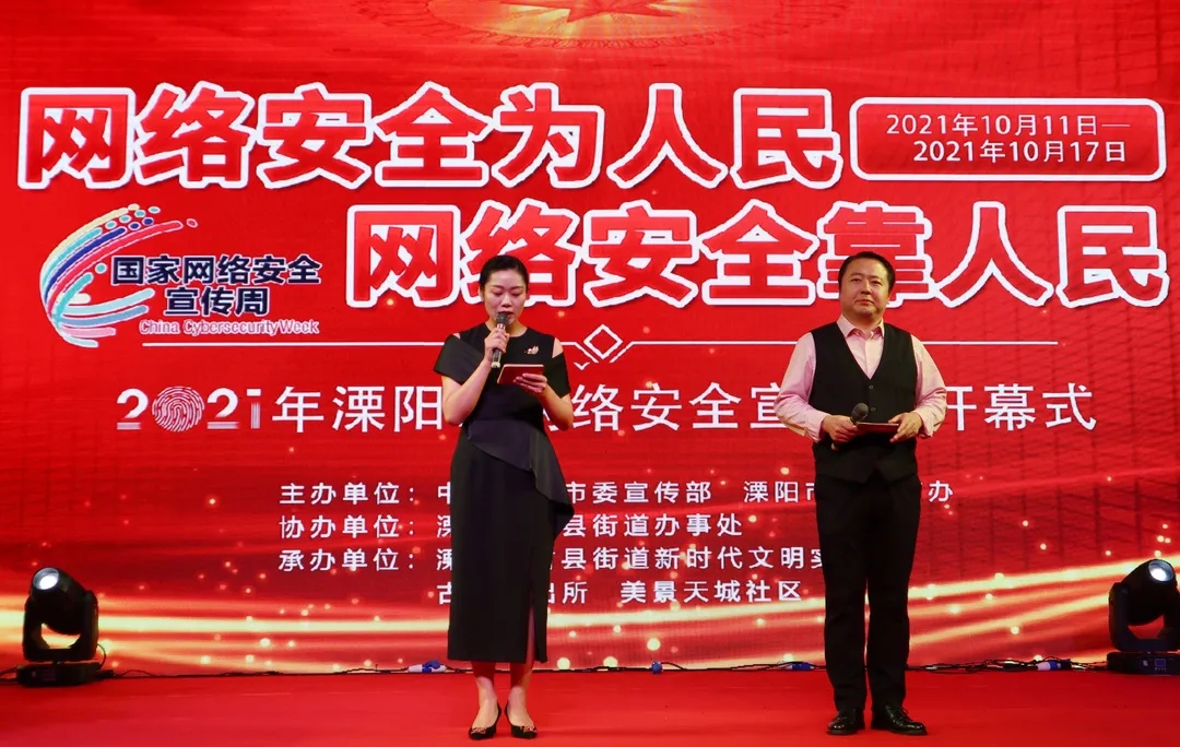 10月11日晚,由市委宣傳部、市委網(wǎng)信辦主辦,市保密局、古縣街道辦事處協(xié)辦,古縣街道新時(shí)代文明實(shí)踐所、古縣派出所、美景天城社區(qū)承辦的以“網(wǎng)絡(luò)安全為人民、網(wǎng)絡(luò)安全靠人民”為主題的2021年溧陽市網(wǎng)絡(luò)安全宣傳周開幕式在古縣街道天目星城法治文化廣場舉行。