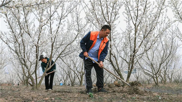 2月下旬,兩場(chǎng)春雪突降。天蒙蒙亮,橫林鎮(zhèn)狄坂村村民穆奇賢就帶著電動(dòng)剪刀、鋤頭,來(lái)到自家的櫻桃園干活,他要盡快修剪被雪壓彎的樹枝,為兩個(gè)月后的櫻桃豐收做準(zhǔn)備。