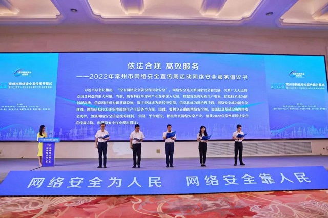 開幕式還舉辦了2022年常州市網絡安全事件應急演練復盤會,發(fā)布了常州市網絡安全規(guī)范服務指南(試行),為2022年常州市網絡安全技術支撐機構授牌,并為2022年常州市網絡安全知識競賽中表現突出的組織和個人頒獎。同時,市網絡空間安全協(xié)會帶領網絡安全企業(yè)發(fā)出倡議,倡導依法合規(guī)、高效服務,營造風清氣正的網絡安全行業(yè)氛圍。