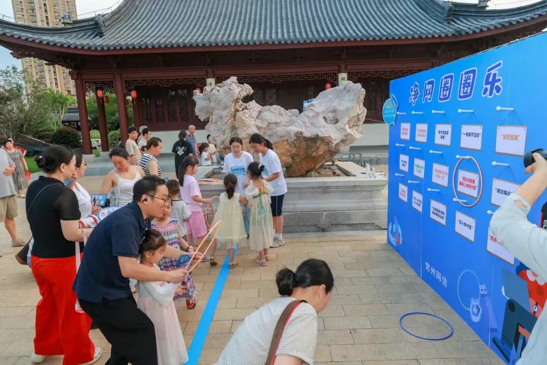 萃園周邊精心布置了網絡文明游園活動,手持積分卡的小朋友們穿梭于各關卡間,通過沉浸式體驗,在輕松愉快的氛圍中掌握了網絡文明知識。