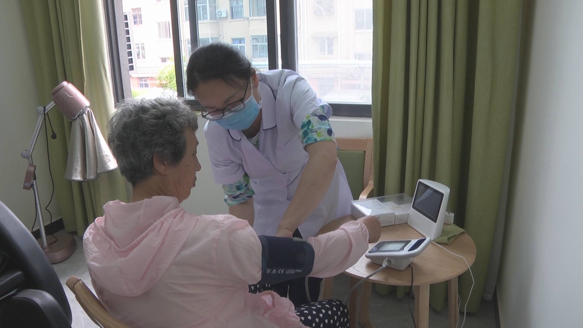 在市區(qū)的機(jī)關(guān)社區(qū),家庭醫(yī)生正在為劉阿姨檢查身體。劉阿姨因?yàn)槟昙o(jì)較大,到醫(yī)院不方便,通過網(wǎng)上預(yù)約,簽約家庭醫(yī)生,醫(yī)生可以上門來檢查身體情況,她感到非常方便。