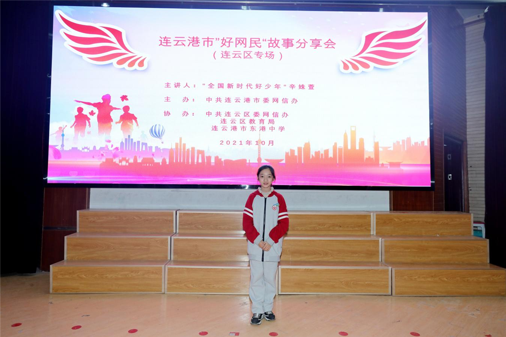 深入基層,開展故事分享?;顒?dòng)開展以來,“好網(wǎng)民”代表們以網(wǎng)絡(luò)訪談、實(shí)地宣講等方式,進(jìn)入學(xué)校、企業(yè)、基層社區(qū)開展故事分享活動(dòng)。其中,連云區(qū)2020年度全國(guó)新時(shí)代好少年辛姝萱走進(jìn)東港中學(xué)向400余名師生分享了她的“少年網(wǎng)事”,講述她在黨史學(xué)習(xí)教育中,通過《我的守島英雄》《向黨青春》《少年強(qiáng)國(guó)說》等網(wǎng)絡(luò)紅色傳播活動(dòng),讓家鄉(xiāng)的紅色故事傳播得更遠(yuǎn)。充分展示了新時(shí)代“校園好網(wǎng)民”的良好精神面貌,發(fā)出的“少年網(wǎng)絡(luò)宣言”更是激發(fā)了現(xiàn)場(chǎng)師生強(qiáng)烈的情感共鳴。