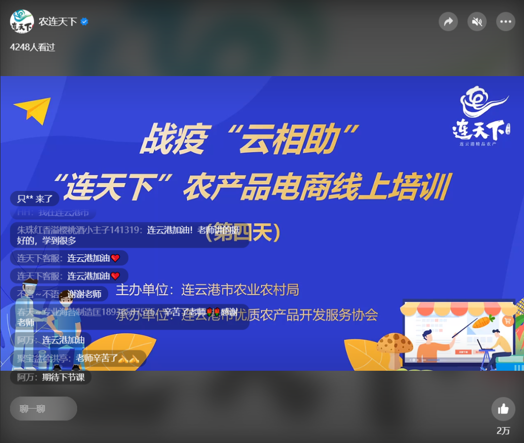 依托“連天下”品牌體系,開展戰(zhàn)疫“云相助”·“連天下”農(nóng)產(chǎn)品電商銷售線上培訓(xùn),邀請電商行業(yè)資深專家,分享農(nóng)產(chǎn)品線上銷售、直播帶貨運(yùn)營技巧、直播團(tuán)隊(duì)配置等內(nèi)容,深受廣大農(nóng)業(yè)經(jīng)營主體歡迎。目前,已開展線上培訓(xùn)8場,累計(jì)培訓(xùn)在線人數(shù)達(dá)2萬人次,獲贊超10萬,助力農(nóng)業(yè)生產(chǎn)經(jīng)營主體打開銷路。探索“線上備耕”“線上春管”模式,利用農(nóng)技耘平臺、連天下公眾號等網(wǎng)絡(luò)平臺,重點(diǎn)對家庭農(nóng)場主、種植大戶、農(nóng)業(yè)合作組織等新型經(jīng)營主體,開展線上技術(shù)指導(dǎo)和遠(yuǎn)程網(wǎng)絡(luò)培訓(xùn),確保不誤農(nóng)時(shí)、不誤農(nóng)事,夯實(shí)夏糧豐產(chǎn)豐收基礎(chǔ)。