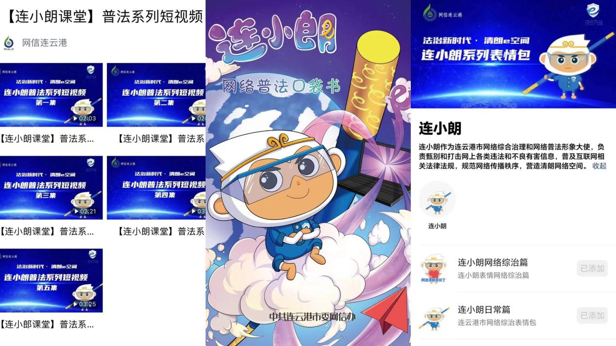 為更好增強(qiáng)宣傳吸引力,實(shí)現(xiàn)護(hù)苗零距離,連云港市融合西游文化元素,塑造網(wǎng)絡(luò)綜合治理形象大使“連小朗”,圍繞原創(chuàng)IP制作“連小朗”系列微動(dòng)漫普法短視頻、設(shè)計(jì)創(chuàng)作漫畫(huà)書(shū)、表情包、周邊文創(chuàng)產(chǎn)品,實(shí)現(xiàn)網(wǎng)絡(luò)普法“寓教于樂(lè)”,使廣大未成年人自覺(jué)主動(dòng)抵制違法不良信息、拒絕網(wǎng)絡(luò)沉迷?!斑B小朗”系列微動(dòng)漫普法短視頻在全市610所中小學(xué)學(xué)校展播,觀看學(xué)生人數(shù)達(dá)100萬(wàn)名。