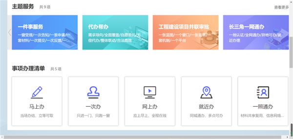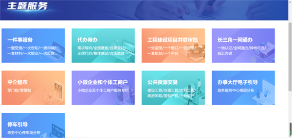 新版的旗艦店包含了個人和法人兩個特色空間,歸集用戶個人信息、證照信息、辦件資料,面向企業(yè)用戶還提供多級用戶授權(quán)使用體系,為企業(yè)提供多人協(xié)作分工辦理服務(wù)事項的功能。隨后的主題服務(wù)專區(qū),則集成了“一件事服務(wù)”、代辦幫辦、工程建設(shè)項目并聯(lián)審批、長三角一網(wǎng)通辦、中介超市、小微企業(yè)和個體工商戶、公共資源交易、辦事大廳電子引導(dǎo)、停車引導(dǎo)九大類“點餐式”服務(wù),為企業(yè)和群眾提供更貼心的服務(wù)、更好的客戶體驗。