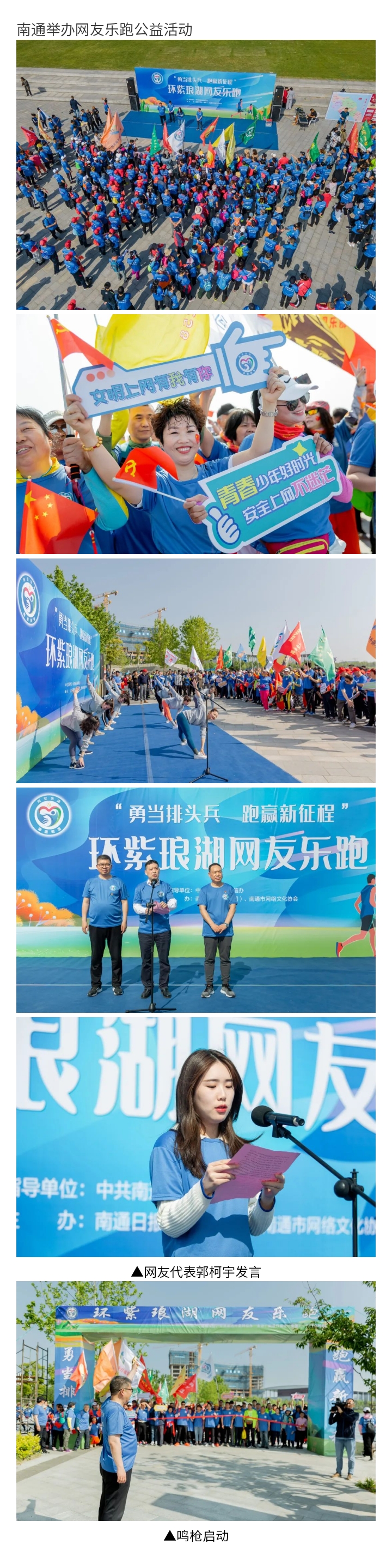 近日,由南通市委網(wǎng)信辦、南通報業(yè)傳媒集團(tuán)、南通市網(wǎng)絡(luò)文化協(xié)會聯(lián)合開展的“勇當(dāng)排頭兵 跑贏新征程”環(huán)紫瑯湖網(wǎng)友樂跑公益活動在紫瑯湖畔啟動。