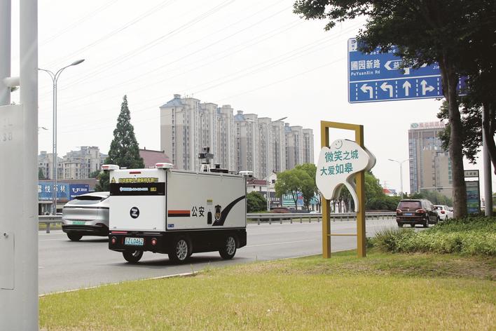 本報訊 (記者張亮 通訊員陳園園 袁珣)9日,南通市公安機關首輛無人駕駛巡邏車在如皋“上崗”(上圖)。