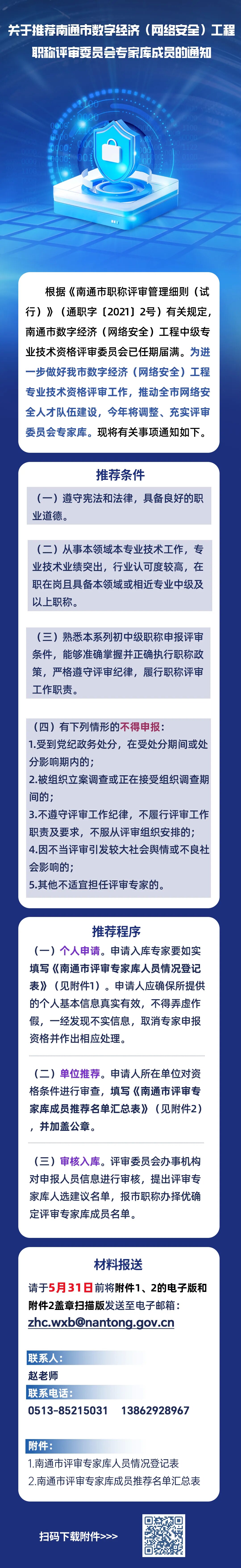 等您加入!南通市數(shù)字經(jīng)濟(網(wǎng)絡(luò)安全)工程職稱評審委員會專家?guī)煺鬟x工作開始啦!