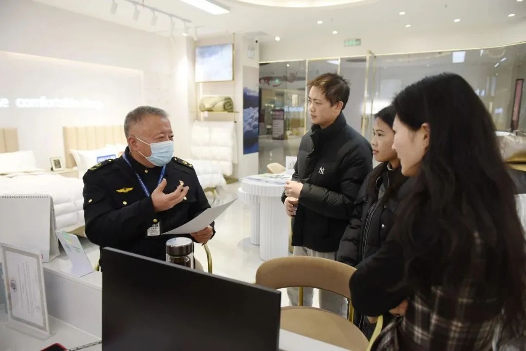 通州區(qū)市監(jiān)局工作人員進行家紡相關產(chǎn)品的國家標準、行業(yè)標準宣貫,引導經(jīng)營主體對標找差 圖源:通州區(qū)市場監(jiān)督管理局公眾號
