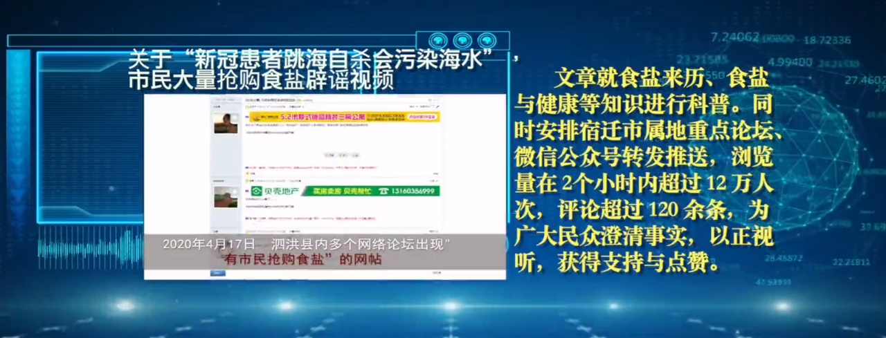 宿遷網(wǎng)絡(luò)辟謠案例:《關(guān)于“新冠患者跳海自殺會污染海水”,市民大量搶購食鹽辟謠視頻》
