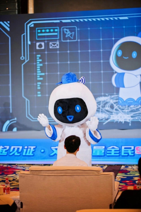 網(wǎng)絡(luò)文明是伴隨互聯(lián)網(wǎng)發(fā)展而產(chǎn)生的新的文明形態(tài),是現(xiàn)代社會(huì)文明進(jìn)步的重要標(biāo)志。為了進(jìn)一步在線上線下凝聚共識(shí)、共謀發(fā)展,大力倡導(dǎo)網(wǎng)絡(luò)文明,共同推進(jìn)文明辦網(wǎng)、文明用網(wǎng)、文明上網(wǎng),代表著科技與文明交融、現(xiàn)代與古代碰撞的網(wǎng)絡(luò)文明IP——“明明”誕生了?!?,2,1……”隨著倒計(jì)時(shí)響起,宿遷網(wǎng)絡(luò)文明IP“明明”首次亮相,與現(xiàn)場人員擊掌互動(dòng),迅速將現(xiàn)場氣氛推向另一波高潮。