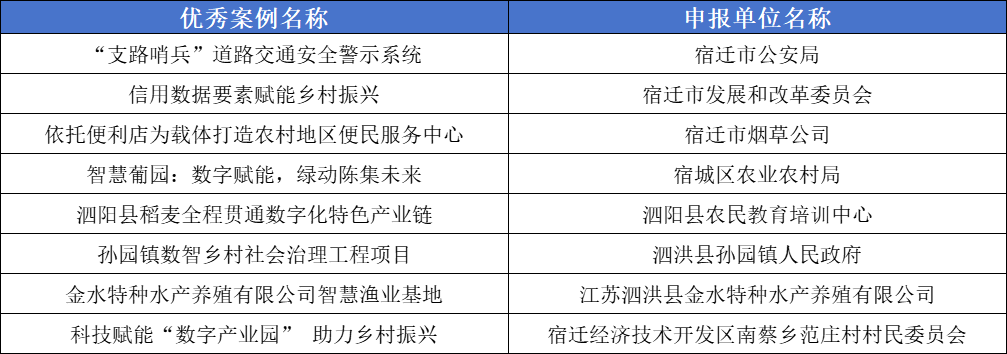 為深入貫徹落實(shí)省、市關(guān)于數(shù)字鄉(xiāng)村發(fā)展的一系列決策部署,總結(jié)提煉實(shí)踐經(jīng)驗(yàn),復(fù)制推廣典型做法,市委網(wǎng)信辦、市農(nóng)業(yè)農(nóng)村局共同開(kāi)展2024年宿遷市數(shù)字鄉(xiāng)村建設(shè)優(yōu)秀案例征集活動(dòng)。經(jīng)各地各部門(mén)推薦、預(yù)審、專家評(píng)審,擬確定“‘支路哨兵’道路交通安全警示系統(tǒng)”等8個(gè)案例為2024年宿遷市數(shù)字鄉(xiāng)村建設(shè)優(yōu)秀案例,現(xiàn)將名單予以公示。