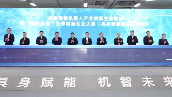 昨天(4月3日),蘇州市具身智能機(jī)器人產(chǎn)業(yè)生態(tài)大會(huì)在獅山國(guó)際會(huì)議中心舉行,具身智能機(jī)器人產(chǎn)業(yè)創(chuàng)新生態(tài)聯(lián)盟暨“贏在蘇州”全球創(chuàng)新創(chuàng)業(yè)大賽(具身智能機(jī)器人專(zhuān)賽)正式啟動(dòng)。工業(yè)和信息化部總工程師謝少鋒,中國(guó)電子學(xué)會(huì)理事會(huì)黨委書(shū)記張峰,市委副書(shū)記、市長(zhǎng)吳慶文出席。