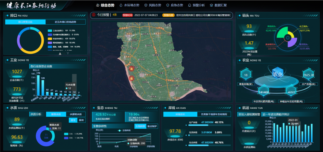 該平臺(tái)對(duì)泰州近百公里長江岸線進(jìn)行全面體檢、綜合整治,填補(bǔ)了生態(tài)環(huán)境治理與保護(hù)的監(jiān)控盲區(qū),以硬核科技賦能監(jiān)管執(zhí)法,鋪設(shè)了一張全天候、全方位、無死角的監(jiān)控“天網(wǎng)”,有力推動(dòng)了長江大保護(hù)實(shí)現(xiàn)主動(dòng)保障、科技支撐、立體管控的戰(zhàn)略轉(zhuǎn)變。目前該平臺(tái)成果正在面向泰州全市域進(jìn)行延展應(yīng)用,不斷推動(dòng)環(huán)境綜合治理數(shù)字化轉(zhuǎn)型。