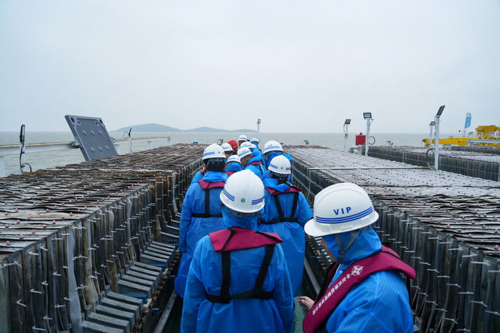 隨后,網(wǎng)絡(luò)文明伙伴和媒體記者們搭船進(jìn)入太湖,登上生態(tài)清淤智能化一體平臺船“太湖之星”,近距離觀摩這一世界首創(chuàng)的水上清淤裝備。