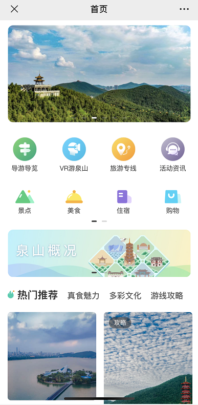 “智慧文旅”系統(tǒng),也稱作“一部手機(jī)游泉山”或“掌上游泉山”,以“泉域旅游”微信公眾號為載體,游客可掃描智慧全域旅游導(dǎo)覽牌地圖上的二維碼或直接搜索關(guān)注“泉域旅游”微信公眾號進(jìn)入,該系統(tǒng)能夠全面覆蓋和滿足游客在泉山區(qū)的各項(xiàng)需求。其中,城市電子導(dǎo)覽手繪地圖覆蓋全區(qū)近百個業(yè)態(tài),將城區(qū)范圍內(nèi)的主要景區(qū)、文化場館、城市地標(biāo)逐一展示,并結(jié)合現(xiàn)代數(shù)字化地圖擬合技術(shù),并將語音導(dǎo)覽與地圖服務(wù)深度結(jié)合。