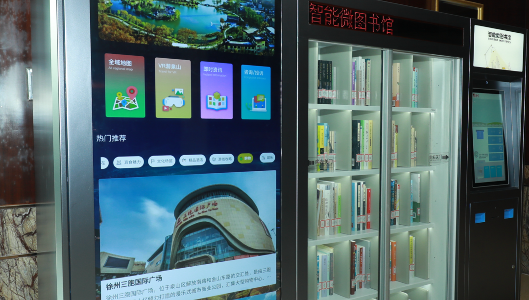 徐州泉山區(qū)在全市唯一的5A級景區(qū)云龍湖景區(qū)的天師廣場、全市唯一的5星級酒店開元名都大酒店、泉山區(qū)旅游集散中心、泉山區(qū)圖書館安裝了4套全域旅游智慧微型圖書館。智慧文旅微型圖書館不僅可以自助借還書,還配有電子導(dǎo)覽屏,與泉山區(qū)智慧文旅服務(wù)平臺互聯(lián),游客可以在這里查詢?nèi)铰糜钨Y源、定制旅游路線等,為游客提供方便快捷的智慧旅游導(dǎo)覽服務(wù)。