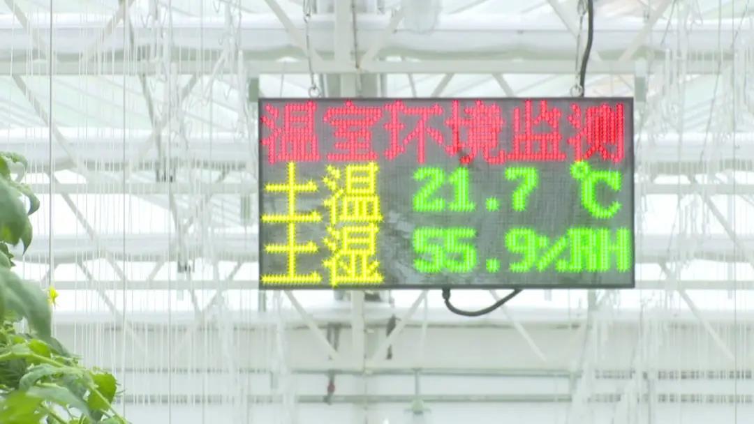 大棚內(nèi)設(shè)有多個(gè)傳感器,一塊電子屏幕就能把智能溫室中農(nóng)作物生長所必需的溫度、濕度、日照條件、微量元素含量等數(shù)值一一展現(xiàn),再通過物聯(lián)網(wǎng)技術(shù),對(duì)比此前人工預(yù)設(shè)的植物最佳生長參數(shù),系統(tǒng)自動(dòng)控制幕布啟閉、滴灌系統(tǒng)開關(guān)等,從而調(diào)節(jié)大棚內(nèi)的溫、光、水、氣等,使作物始終處在最適宜生產(chǎn)的環(huán)境中。