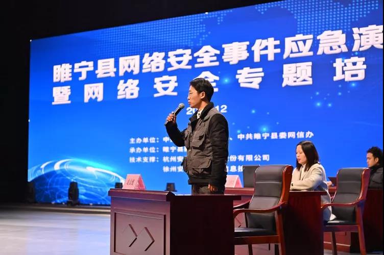 12月17日上午,睢寧縣舉辦網(wǎng)絡(luò)安全事件應(yīng)急演練暨網(wǎng)絡(luò)安全專題培訓(xùn)。此次活動由睢寧縣委宣傳部、睢寧縣委網(wǎng)信辦主辦,睢寧縣融媒體中心承辦。睢寧縣經(jīng)濟開發(fā)區(qū)、各鎮(zhèn)(街道)、縣直各單位的網(wǎng)絡(luò)安全分管領(lǐng)導(dǎo)及業(yè)務(wù)科室負責(zé)人參加活動。徐州市委宣傳部副部長、網(wǎng)信辦主任宋小虎出席活動并講話。睢寧縣委常委、宣傳部部長洪海濤致開幕辭。