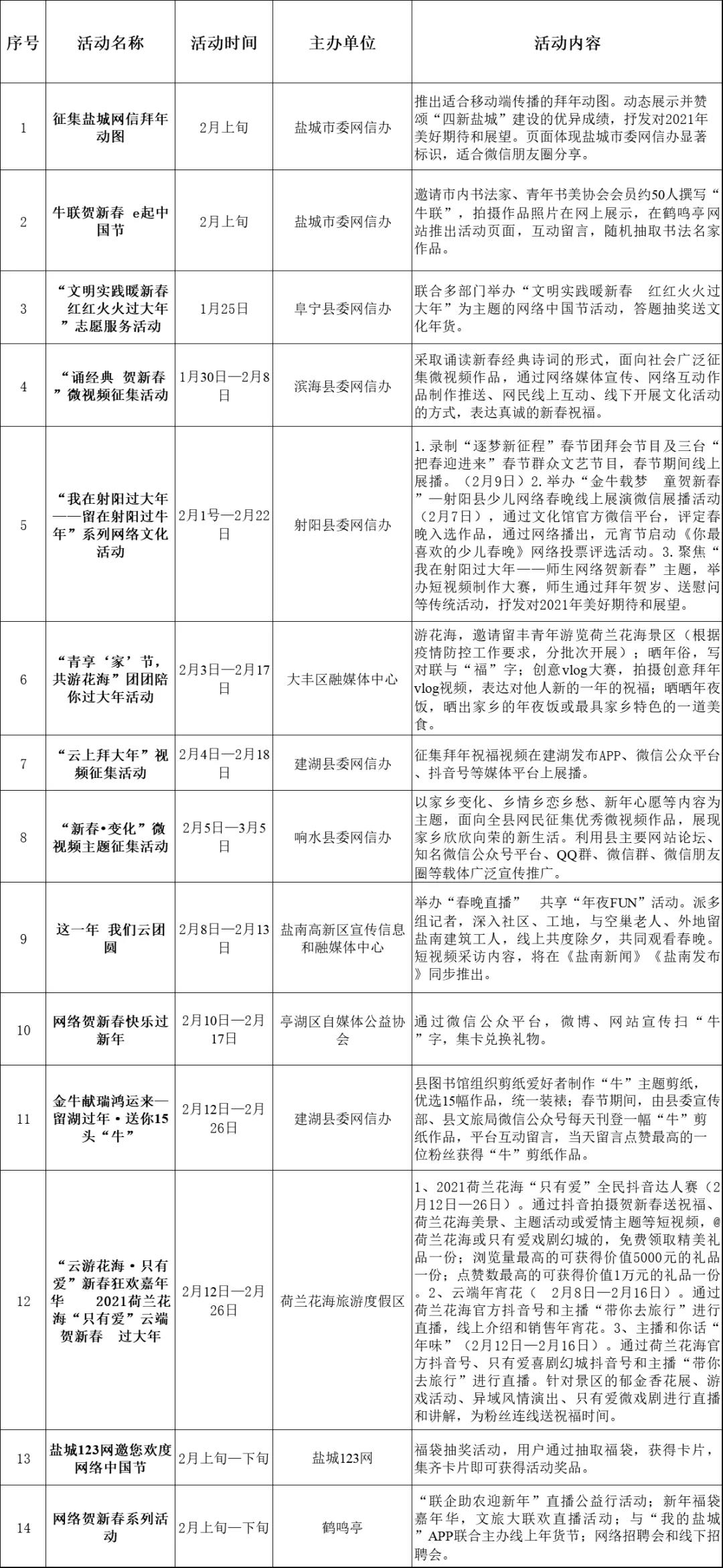 附:2021年鹽城市網(wǎng)絡(luò)賀新春活動安排表