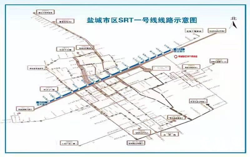 據(jù)了解,SRT一號線沿鹽城市區(qū)青年路主廊道,東起青年路躍進路口,西至青年路寶興路口,全長13公里,沿線設(shè)站17座,單程行駛時間約45分鐘。SRT列車采用四節(jié)編組兩動兩拖,雙向都可以行駛,車身全長36米,設(shè)計時速70公里,最大載客量320人,是普通公交車的4倍,運營時間為早上6點半至晚上8點半,票價1元,無人售票。全程路權(quán)、信號優(yōu)先。鹽城SRT項目在建設(shè)初期,就統(tǒng)籌了SRT與公交BRT的融合發(fā)展,重點在“站臺標準、安全設(shè)施、交安工程、調(diào)度監(jiān)管”等四個方面進行深度融合。通過融合發(fā)展,將SRT的運營時間、運營編組、發(fā)車間隔、行車應(yīng)急處置等納入大公交系統(tǒng),實行統(tǒng)一運營管理。