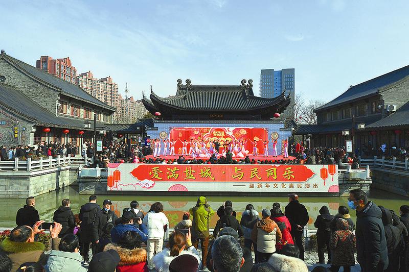 春節(jié)期間,各類新潮獨(dú)特的小型演出陸續(xù)走進(jìn)景區(qū)、文博場(chǎng)館、飯店、茶館……遍布全城的演藝新空間,臥虎藏龍的文藝工作者和民間藝人,正在將鹽城打造成一個(gè)開放式的歡樂大舞臺(tái)!