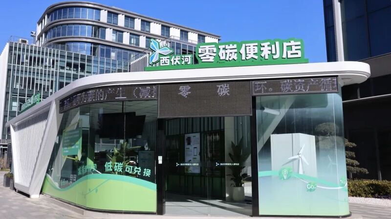 在西伏河綠色低碳科創(chuàng)園,“綠色行為即財富”的標語正演變?yōu)楝F(xiàn)實。光盤行動獲3個碳積分、駕駛電動汽車入園得5個碳積分、參與環(huán)保答題再贏5個碳積分——這些碳積分可在園區(qū)內(nèi)的零碳便利店直接兌換成代金券,開創(chuàng)了“碳價值即時變現(xiàn)”的消費新模式。這是全國首家“碳+AI”零碳便利店。通過技術(shù)創(chuàng)新將環(huán)保行為轉(zhuǎn)化為經(jīng)濟激勵,構(gòu)建出“低碳-積分-消費”的閉環(huán)生態(tài)。